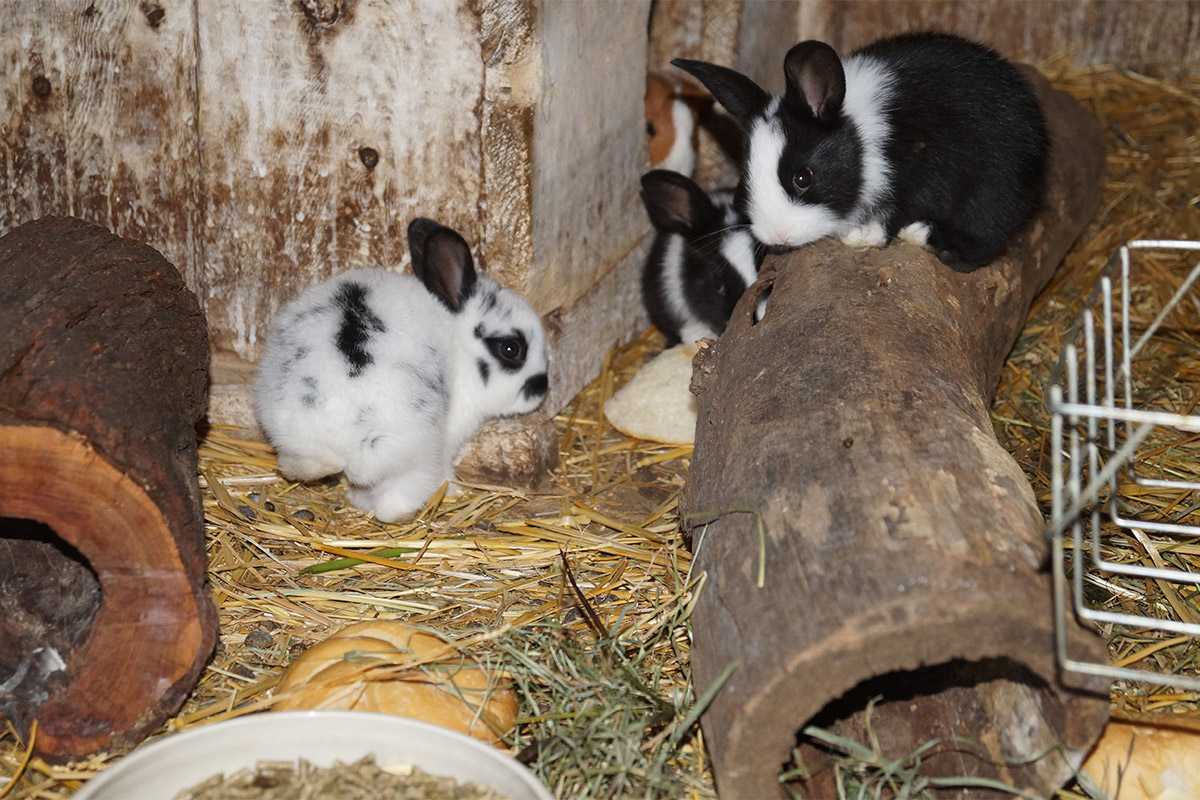 Bei uns leben Hasen, Enten, Minischweine, Hühner, Kühe und Kälber, Zwergziegen, Katzen und unsere lieben Hunde. Und wenn ihr Glück habt, könnt ihr sogar bei der Geburt eines Kälbchens mit dabei sein!